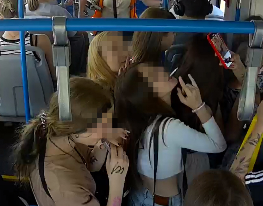 - Четыре девочки курили в движущемся трамвае.
