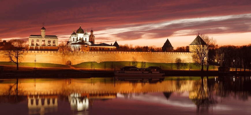Территория свыше 12 га, на которой находятся древние постройки, такие как соборы, музеи и архитектурные памятники. Кремль, который гордо возвышается на холме. Объект Всемирного культурного наследия ЮНЕСКО. Древние русские крепости в старину называли Детинцами. Позднее их стали величать Кремль. Но только не в Великом Новгороде. Здесь сохранилось прежнее название – Детинец. Ведь именно так его по сей день называют местные жители. Согласно историческим летописям, Новгородский Детинец упоминается ещё в 1044 году. В те годы он был существенно меньше и состоял полностью из дерева. Диковинкой территории стал Софийский собор, который начали возводить в 1045 году. В нём же и похоронили сына Ярослава Мудрого – Владимира. Стены собора до сих пор сохранили старинные надписи, датируемые средним веком. Купола храма выполнены в виде древнерусских шлемов. К главным святыням относят иконы Знамение Пресвятой Богородицы, Софии Премудрости Божией и Успения Пресвятой Богородицы. Кстати, а вы знали, что хра
