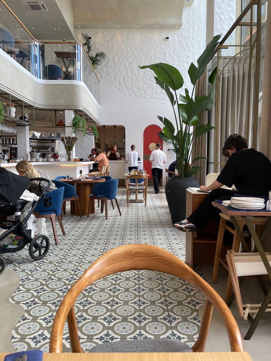 > мой канал < Красивое местечко открылось этим летом не в центре столицы, а внезапно за его пределами. Очень воздушное и светлое двухуровневое пространство с огромными окнами, обилием дерева и яркими акцентами (синие кресла, терракотовая арочная дверь, зелёные пальмы) перенесут вас куда-то в Средиземноморье. Всеобщее внимание приковывает, конечно же, стена полок с декоративными штуковинами и люстра, напоминающая кораллы. Название ресторана, кстати, несёт в себе основной концепт как еды, так и интерьера - вдохновила создателей на всё это великолепие звезда итальянского кинематографа Клаудия Кардинале. Сама актриса родом из Туниса, поэтому в меню сразу несколько направлений: немного Италии, Португалии, ну и Туниса. В общем, местечко получилось довольно приятное, модное и вкусное. Нашим бонусом к посещению стал милёшный сосед 🐶, который кайфовал от гедонизма так же как и ваш автор. 📍пароли, явки, адреса