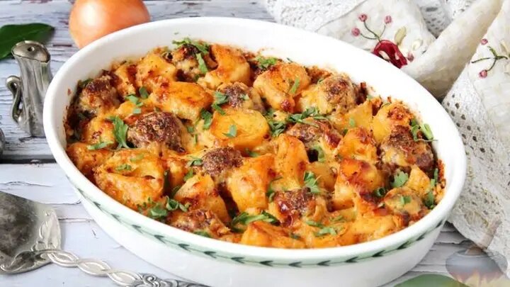 Продукты (на 4 порции) Картофель - 700 г Фарш свиной - 250 г Молоко - 90 мл Сыр плавленый мягкий - 75 г Лук репчатый - 40 г Чеснок - 1-2 зубчика Масло растительное - 1 ст. ложка Паприка молотая - 5 г Соль - по вкусу Перец чёрный молотый - по вкусу Пошаговый фото рецепт Подготовьте все необходимые ингредиенты. Репчатый лук очистите. Петрушку промойте и обсушите. Картофель очистите и вымойте. Разрежьте каждый клубень на 4 части. Выложите картофель в форму для запекания с толстым дном. Картофель посолите, поперчите, влейте растительное масло и посыпьте паприкой. Аккуратно перемешайте, чтобы дольки полностью покрылись маслом и специями. Репчатый лук мелко нарежьте.