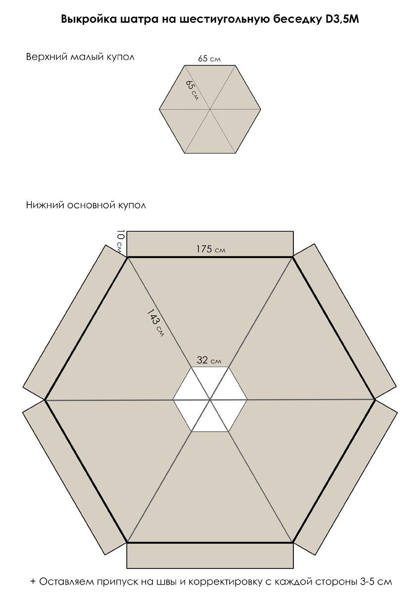 Путём нехитрых вычислений выкройка была построена, расчеты сделаны математическим путём, т.к измерить крышу собранной беседки немного проблематично. Схему с размерами прилагаем, вдруг кому пригодится. Раскроила с припуском на толщину конструкций и соединений (1см с каждой стороны) + запас на строчки и подгибы(по 4 см). Сметала пока руками, чтобы была возможность скорректировать, не делая лишних дырок в ткани. В последнюю поездку на участок примерили уже на беседке. Всё отлично подошло по размеру, однако выяснилось, что для лучшего крепления надо бы добавить пару завязок для закрепления углов на колоннах на случай ветра. Учтем))