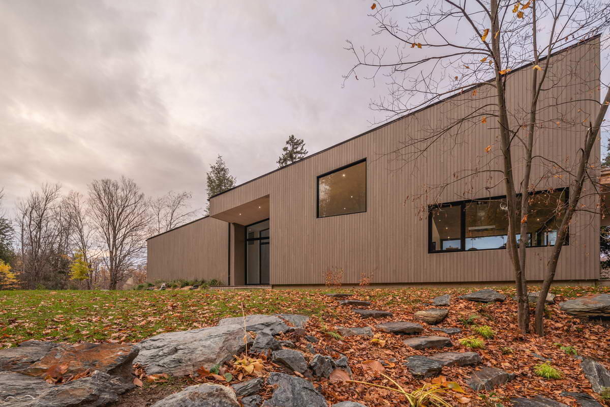 Простой дом с односкатной крышей на лесной лужайке и ещё 4 современных дома в Канаде