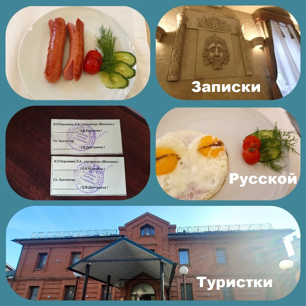 На время вернулись в СССР! )) Гостиница Мономах во Владимире не относится к сетевым, это частное заведение. Поэтому питание здесь организовано на основе целесообразности и снижения издержек, уменьшения пищевых отходов, и здесь нет привычного шведского стола на завтрак. На фото - главный вход в гостиницу Мономах. Мы бронировали номер Люкс с включенными завтраками (побывать в нашем номере можно, посмотрев видео в конце). При заселении на ресепшн нам выдали талоны на усиленное питание завтрак. Выдаются талоны по числу гостей. Талоны очень забавные, двухсторонние.