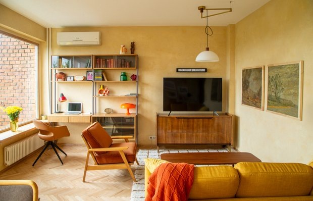 Яркий и очень уютный интерьер с продуманным функционалом и интересными дизайн-решениями Как создать стильный интерьер с ностальгией, но не сделать его старомодным? Узнаем в новом румтуре! Герой румтура: дизайнер Павел Фотеев оформил квартиру для последующей продажи. Кратко о квартире: двушка 62 м² находится в Доме Минобороны, построенном по проекту архитектора А. Меерсона в 1973 году. В народе этот дом называют Домом генералов, так как квартиры здесь получали военные с высшими воинскими званиями. Из изменений в планировке только объединенный санузел, остальные комнаты остались на своих местах: кухня, гостиная, спальня, большой коридор. Узнайте, как Павел Фотеев обустроил яркий современный интерьер с элементами ретро стиля, который хочется рассматривать в деталях. Оцените организацию пространства и оригинальные дизайн-решения в гостиной, в которой удалось обустроить несколько функциональных зон. Внимательно рассмотрите интерьер — в каждой комнате есть европейская винтажная мебель и совр