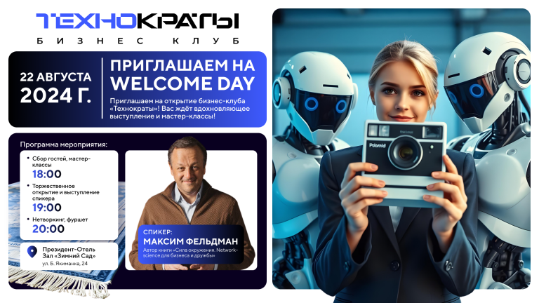 22 августа в Москве пройдёт закрытая презентация бизнес-клуба «Технократы». Это сообщество лидеров и специалистов разных сфер, где ценят нетворкинг и развитие. Откроет мероприятие выступление Максима Фельдмана — автора книги «Сила окружения. Network-science для бизнеса и дружбы». Эксперт раскроет тему «Возможности и преимущества нетворкинга» и поделится своими знаниями и опытом о том, как использовать силу окружения для достижения успеха в бизнесе и личной жизни. Для гостей подготовлена развлекательная программа: мастер-классы, где любой желающий сможет попробовать свои силы в оригами и каллиграфии, настольные игры с темами для общения и музыкальный сет от DJ. Не забудьте также воспользоваться возможностью познакомиться с новыми людьми и расширить свою сеть контактов. Нетворкинг — это ключ к успеху в современном мире, и наше мероприятие предоставляет вам отличную платформу для этого. Завершится вечер приятной музыкой и фуршетом, где вы сможете насладиться вкусной едой и напитками, а та