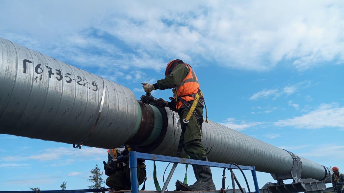 ООО «МежРегионСтрой» проводит работы по гидроизоляции сварочных стыков линейной части нефтепровода и протяжку болтовых соединений опор на объекте строительства «Нефтепровод «Ванкор» - «Сузун».