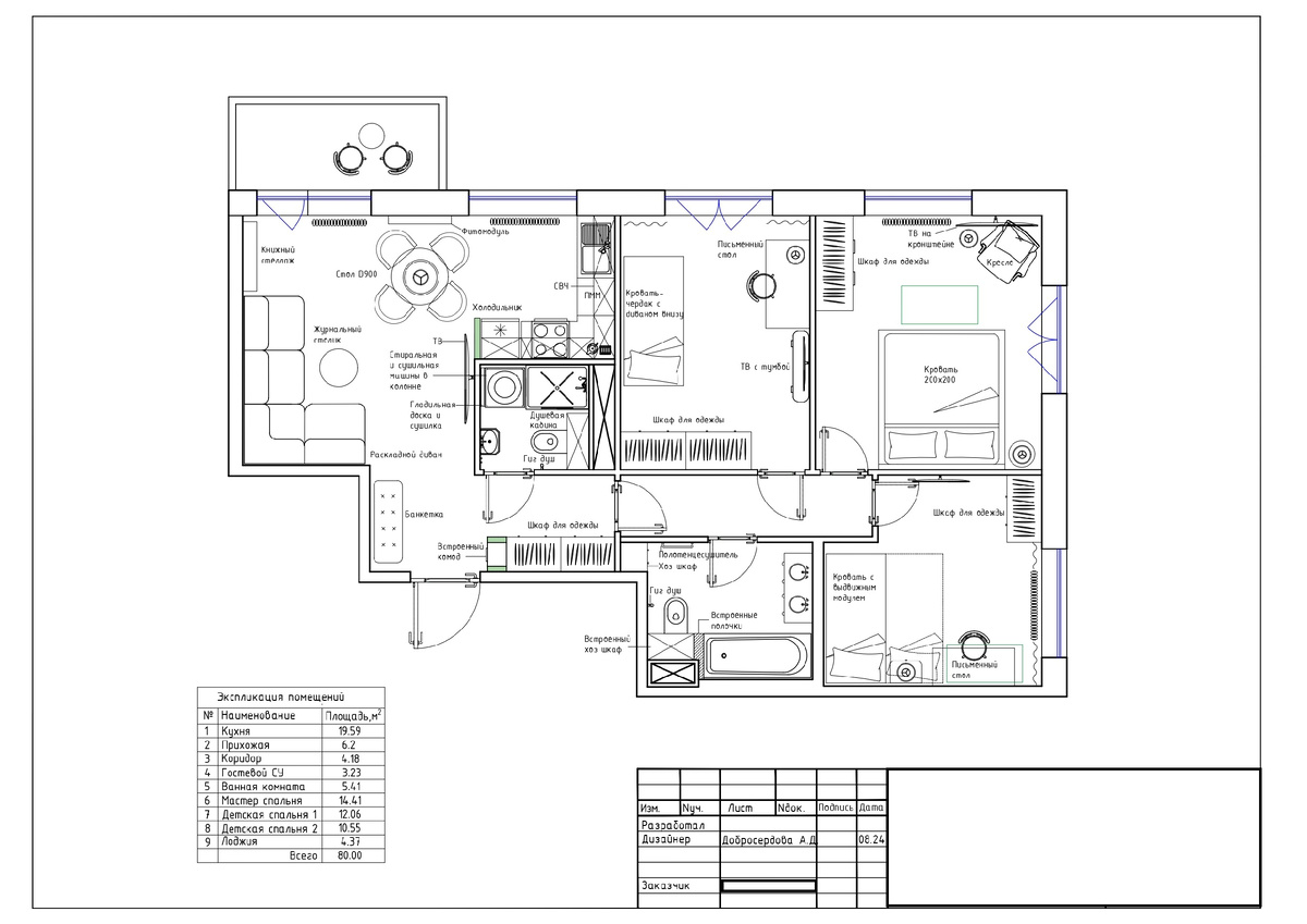 Сегодня я хочу рассказать о том, как мы вместе с клиентами работали над дизайном детской комнаты. Это отличный пример того, как планировочные решения могут меняться в процессе работы, подстраиваясь под реальные потребности семьи. Когда я начала работать с клиентами, они сразу обозначили, что определённые зоны в их новом доме, такие как кухня, спальня и санузлы, им вполне устраивают. Однако с детской комнатой возникли сложности. Планировка не выглядела гармоничной, и клиенты заметили это, почувствовав, что пространство напоминает "набор мебели", а не полноценное жилое помещение. Это действительно было так — я сама чувствовала, что что-то не складывается. Телевизор в детской: да или нет? Одной из причин, мешавших создать цельную картину, было наличие телевизора в детской комнате. Согласно техническому заданию, телевизор должен был находиться напротив дивана, но на ограниченном пространстве это просто не вписывалось. После обсуждения с клиентами мы решили убрать телевизор из детской, что
