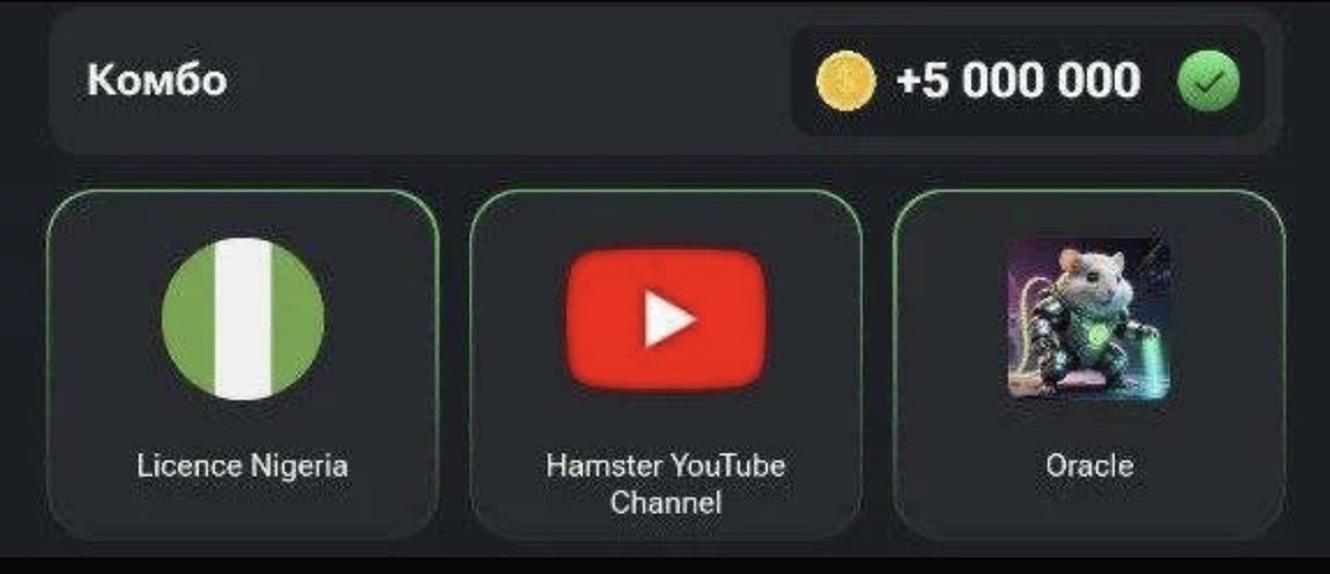Друзья, сегодня, 20 августа 2024 года, пришло время погрузиться в мир новых комбо карт в игре Hamster Kombat. На сегодняшний день свежие комбинации карт: Эти комбо карты открывают новые возможности для прокачивания вашей фермы , а именно бонус 5КК . Готовьтесь к листингу и прокачивайте свою ферму , ведь с такими бонусами можно быстро достичь хорошего пассивного заработка , всем удачи. Подписывайтесь на мой канал и первыми узнавайте ежедневно о новых Комба картах , ведь они будут обновляться каждые 24 часа Так же хочу рассказать вам , что появилась новая игра от платформы 1 win , дает большие надежды , что их токен будет стоить очень хороших денег , и все смогут поднять хорошую сумму, так что заходите все пока не поздно . Всем удачи и хорошего заработка . Ссылка :