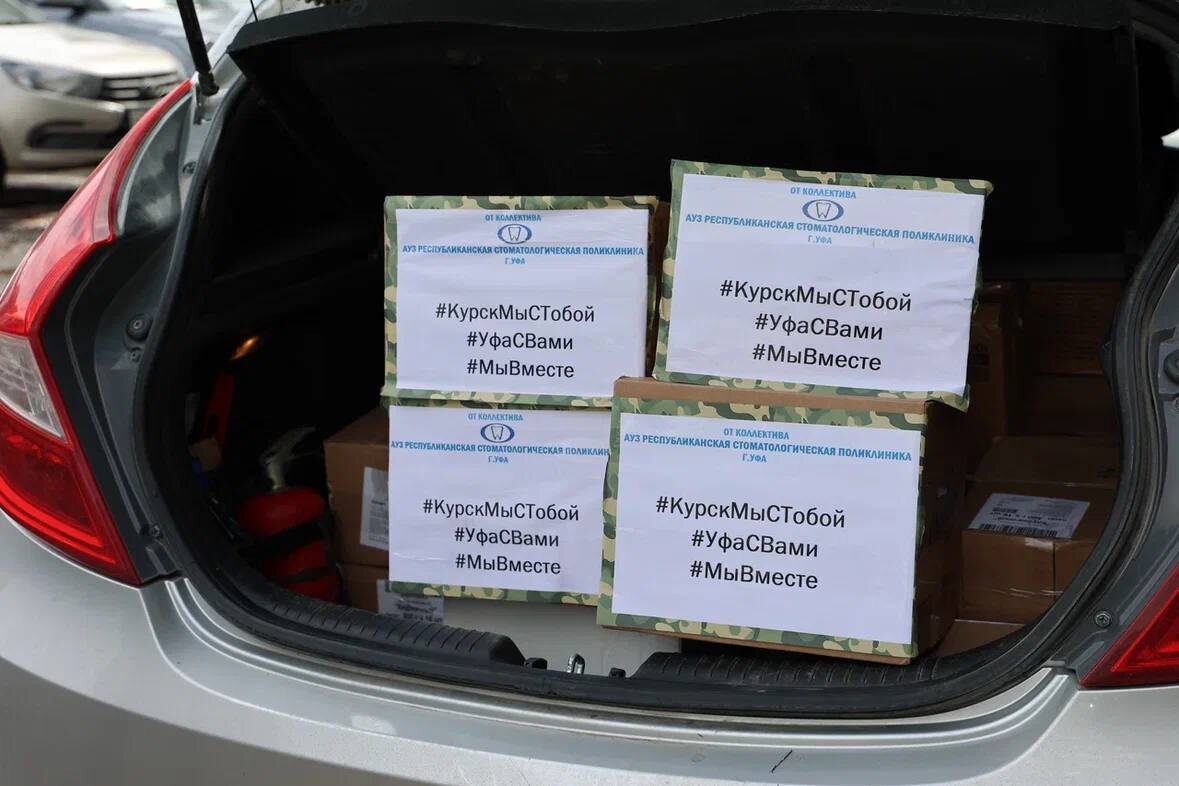 Врачи Республиканской стоматологической поликлиники передали 25 коробок с гуманитарной помощью для жителей приграничных районов Курской области.