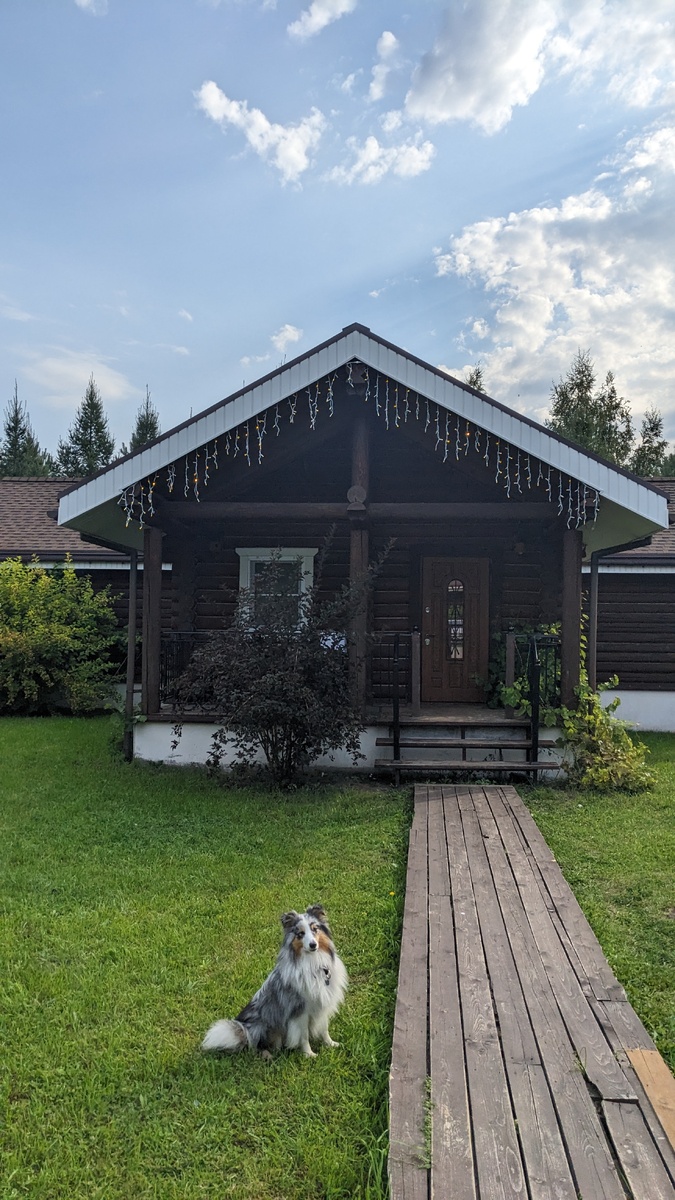 Мы приехали в тульскую обл и остановились в усадьбе Александрово, с собаками можно. Плюс у них была акция 2 Ночи покупаешь+1 в подарок, домик шикарный , 4 спальни, два туалета, душ, все выполнено из дерева, подсветки, есть бассейн, за отдельную плату завтраки. В общем пока мы тут обитаем, и отсюда будем ездить смотреть достопримечательности. Вчера жарили шашлыки , играли с Грогу в пуллер, Грогу ночью первый раз увидел ёжика 😄 замер и смотрел на него, интересно было )) не гавкал, я его отозвала и мы ушли, когда вернулись, Грогу пошел проверять ёжика, но тот уже сбежал ☺️ Отдых продолжается, ура 🐾😂🧳