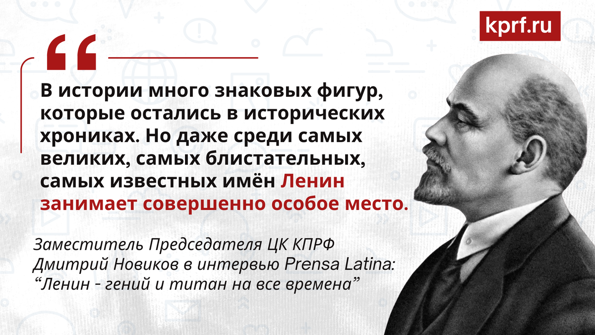Наследие Ленина вне всякого сомнения живо. Когда-то – в начале 1990-х годов – Коммунистическая партия России указом Бориса Ельцина была запрещена. Потом началось её восстановление. Мы прошли этот путь достаточно быстро. КПРФ тогда, 30 лет назад, стала крупнейшей, самой влиятельной оппозиционной партией в нашей стране и сохраняет эту позицию до сегодняшнего дня.
