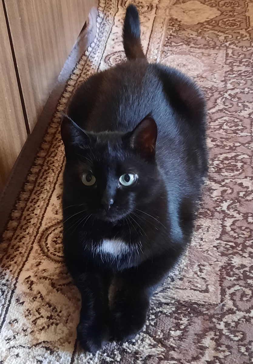 В нашем доме живет замечательная кошка и зовут ее Мурка. У нее красивые, аккуратные ушки и правильный овал мордочки. Глаза у Мурки просто изумительные: огромные, выразительные, зелёного цвета. Мех у нее чёрный с белым бантиком на груди ,очаровательная белая манишка.