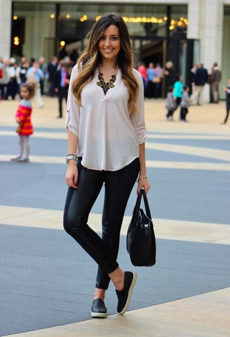 Казалось бы, это часть спортивного стиля, а в некоторых случаях можно отнести к спортивной экипировке. И это всем нам знакомые леггинсы и лосины. Так чем же они так понравились девушкам и почему популярность их не спадает? Сочетание леггинсов с блузой позволяют освежить образ. Удачное сочетание одновременно элементы делового стиля и молодежной мобильности. Образ отлично подойдёт девушкам 30+ лет. Буквально в 2020 году леггинсы можно было встретить у каждого производителя в ассортименте. Мы даже не заметили, как этот тренд «прошёлся широким шагом» по миру моды и стиля. Леггинсы взяли свою популярность от лосин. И если лосины это сугубо спортивная, тренировочная одежда. То леггинсы стали их альтернативой, которая устоялась как отдельный тренд. А в дальнейшем и породила целую моду. Леггинсы и пальто создают образ парижанки из кино. В сочетании с каблуком визуально удлиняются ноги и дополнительно подчеркивается стройность. А так же делают "легче" вес пальто. Такой образ позволяет девушкам