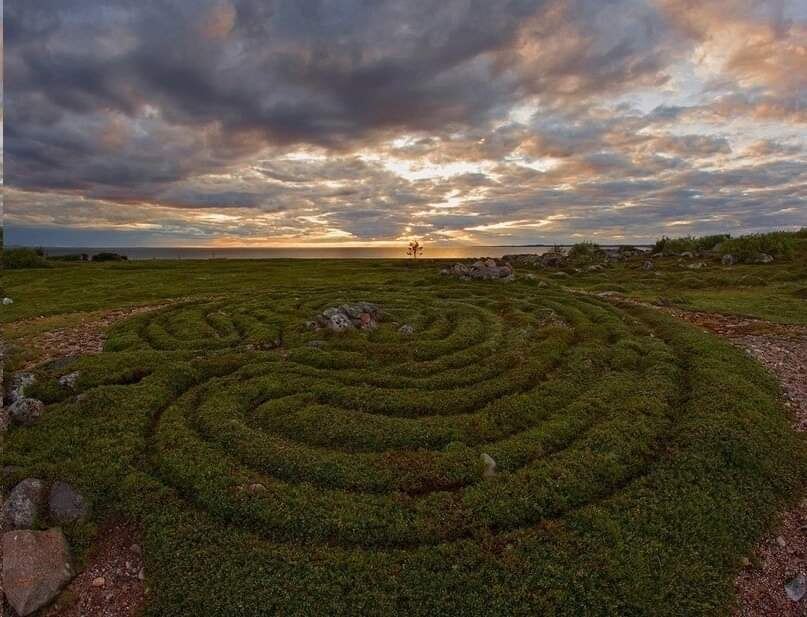Соловецкий архипелаг включает в себя шесть крупных островов: Большой Соловецкий, Анзерский, Большую и Малую Муксалму, Большой и Малый Заяцкие, а также множество мелких островков. Пожалуй, самым загадочным и мистическим островом является Большой Заяцкий. Мы отправились в сторону Заяцких на моторной лодке ближе к закату, предварительно купив билеты в центре гостеприимства. По сравнению с бухтой Благополучия, открытое море было немного более "взволнованно". Пришлось немного потрястись в пути, укрываясь от брызг холодного моря, попутно любуясь морскими пейзажами и рассматривая деревянные скелеты пароходов-исполинов, которые обрели вечный покой у берегов островов Сенные Луды. В вечернее время на острове уже нет туристических групп и можно спокойно и без суеты побродить по тропинкам и деревянным помостам, наслаждаясь красотой суровой северной природы. Она здесь очень напоминает тундру: невысокие кусты, карликовые деревья, мхи, лишайники и камни... Большой Заяцкий остров находи