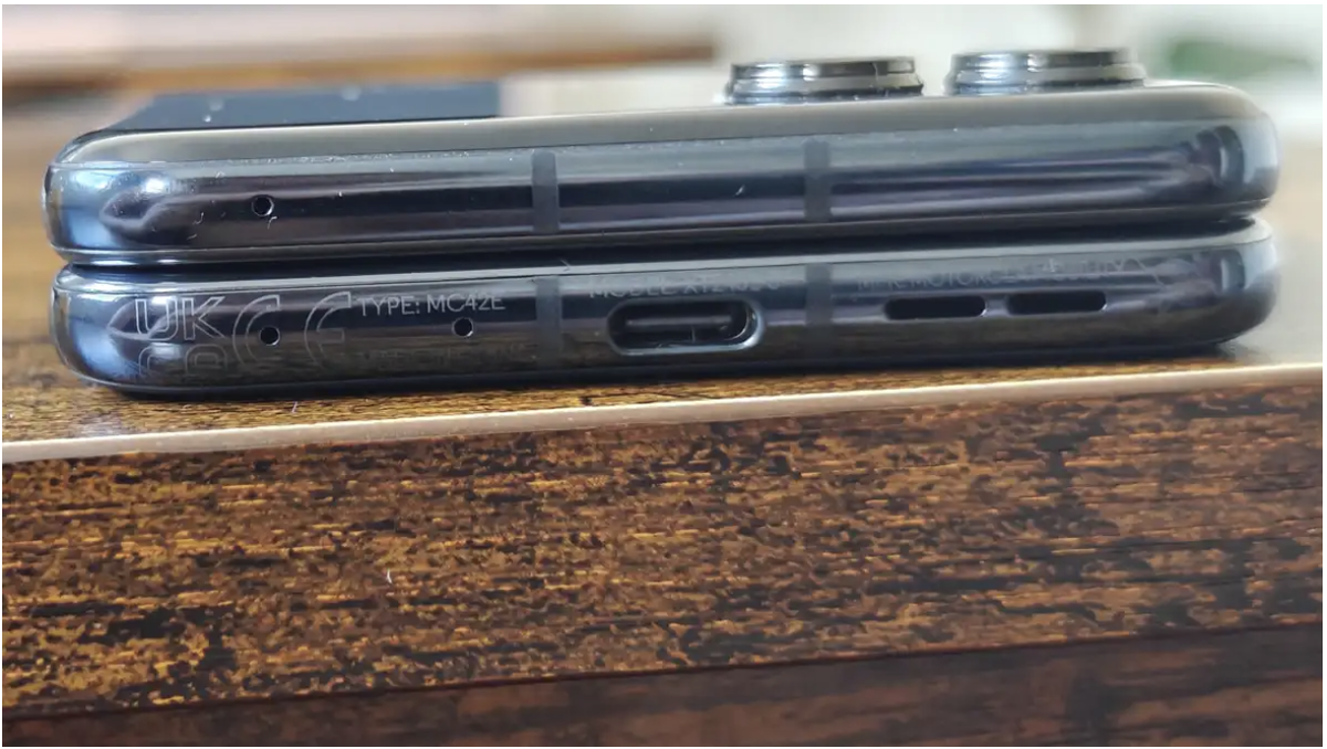 Из-за выступающих объективов камеры смартфон не способен лежать на горизонтальной поверхности стола полностью заподлицо дисплеем вверх, но это обычная проблема многих флагманских аппаратов. Motorola утверждает, что обновленный шарнир позволяет пользователям легче закрывать и открывать гаджет одной рукой. Это не совсем так, поскольку для открытия одной рукой необходимо прикладывать заметные усилия.