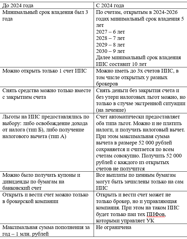 В 2024 году на финансовом рынке появился счет нового типа ИИС 3. Это индивидуальный инвестиционный счет, но с новыми условиями получения льгот и обслуживания. В этой статье разберем все тонкости работы с ИИС 3. Что изменилось? До января 2024 года существовало 2 типа ИИС: А и Б. Теперь ИИС только одного вида, сочетающий в себе льготы обоих типов счетов. Это основное изменение, которому подвергся индивидуальный инвестиционный счет. Разберем изменения подробнее: В целом изменения выглядят привлекательно, кроме минимального срока владения и отсутствия возможности получать купоны и дивиденды на банковский счет. Согласно аналитике от ЦБ РФ инвесторы не слишком лояльно восприняли изменения и количество счетов ИИС сократилось (сравнение 4 квартала 2023 года к 1 кварталу 2024). Это может быть связано и с тем, что несмотря на возможность открыть 3 счета ИИС одновременно в Налоговый кодекс РФ изменения сразу не внесли, что мешало получать налоговый вычет, если счетов было больше одного. Однако, у