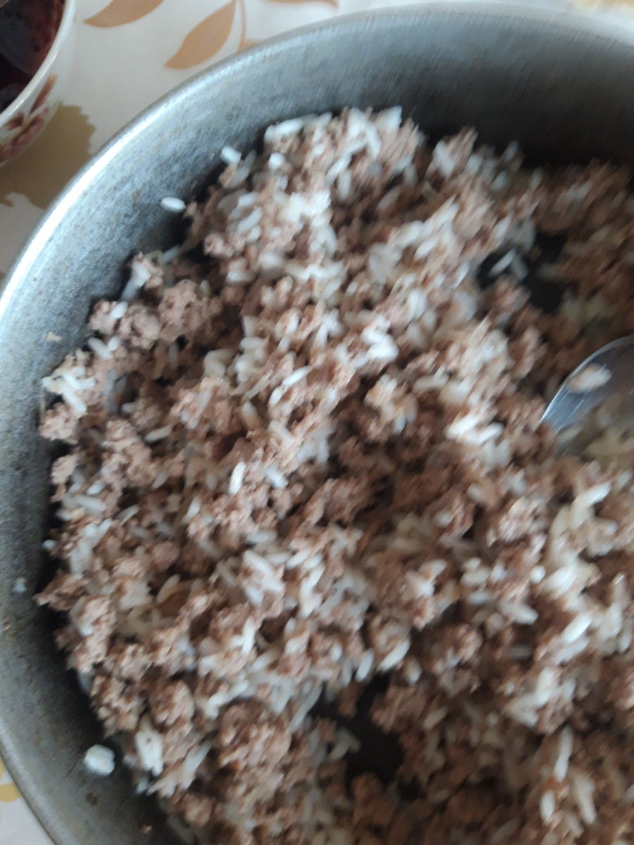 Блины- тесто 1 ст молока 3 яйца 1 стак муки с горкой 0.5 чай дожки соли и сожы 1 стало ложка сахара без горки Фарш 0.5 кг свинины 0.5 кг говядины 1-3головки лука 1-3 шт картошки Соль, перец по вкусу. Рис отварить фарш пережврить и все готово.