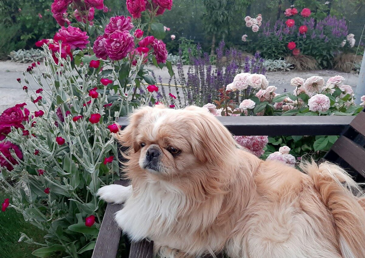 Я обещала написать о второй своей садовой скамейке, упомянув, что она более популярна у моей семьи. Семьёй я считаю и живущих на данный момент в моём доме кота и собаку. Фотографии людей на этой скамье без их разрешения не выложишь, а вот животным надеюсь, что не просто всё равно, а где-то даже приятно получить свою минуту славы. Начнём со старшего, Юлиан уже шестой год украшает не только нашу обыденную жизнь, но и наш сад. Конечно, запечатлеть его на фотокамеру не всегда просто, но иногда в нём просыпается фотомодель, и он с удовольствием позирует. Он никогда не сидит/лежит на скамье, о которой я рассказывала в первой части, его любимое место здесь. Ранней весной, когда солнышко только начинает пригревать, он всегда ловит его лучи именно на этом месте. Потом начинают распускаться розы, Юлик всё держит под своим неусыпным контролем, вид у него обычно озабоченный и деловой. Хозяин, не больше, не меньше. Если вокруг всё в порядке, то можно и расслабиться, помечтать о какой-нибудь сладкой