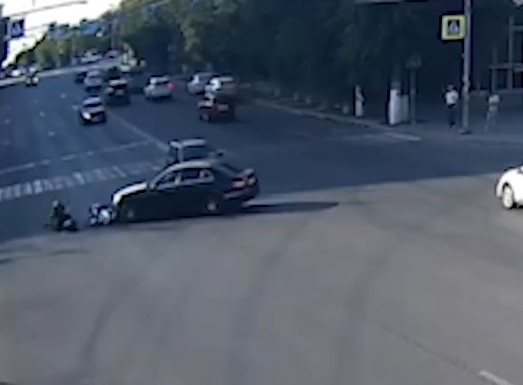 Доставщик еды слетел со скутера, избегая аварии с легковушкой в Волгограде