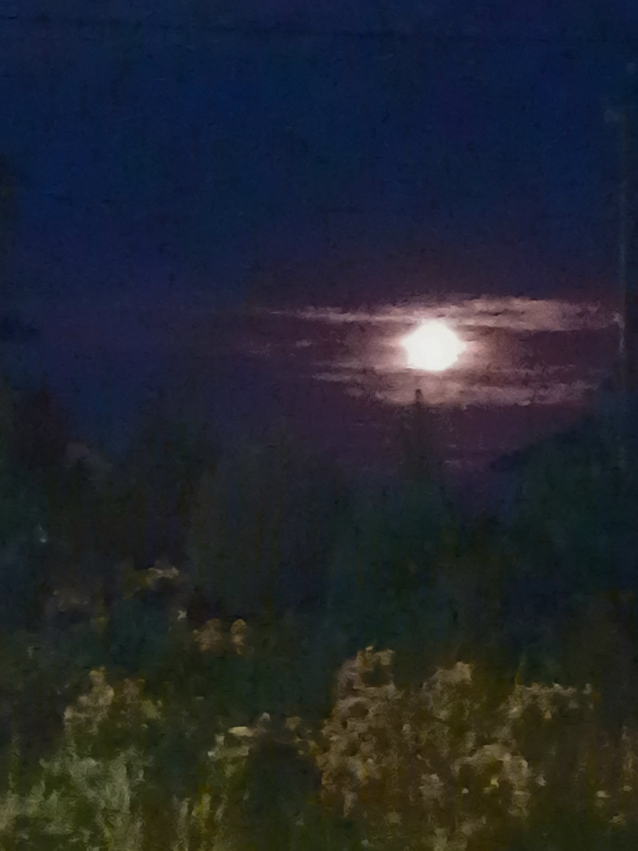 Не спится!Кругом тишина и даже собаки не лают...петухам кукарекать ещё рано.Гляжу на часы,начало второго.Кошки спят спокойно,свернувшись в клубочки,и это немного успокаивает.Но всё равно на душе как то тревожно,решила выйти на крыльцо,посмотреть всё ли спокойно? Подняв глаза к небу поняла откуда эта тревога...ПОЛНОЛУНИЕ (у меня всегда так) Возвращаюсь в тёплую,уютную постель.Надо постараться заснуть,осталось всего два часа и я снова проснусь,но уже не от тревоги,а от того что крупный,жёлтый фонарь-ЛУНА будет светить на мою подушку.И от этого яркого,неземного свечения никуда не скрыться.И остаётся только лежать с закрытыми глазами,размышлять,анализировать так ли сделала,не совершила ли ошибки...А иной раз и подкрадётся коварная мысль злодейка,например о том счастлива ли я...и так и хочется себя пожалеть,заскулить и вспомнить всё о чем мечтала и чего не позволила себе сделать,струсила,спряталась за чужую спину(ах,почему я тогда думала,что это родная спина...)...это мысли,просто мысли,