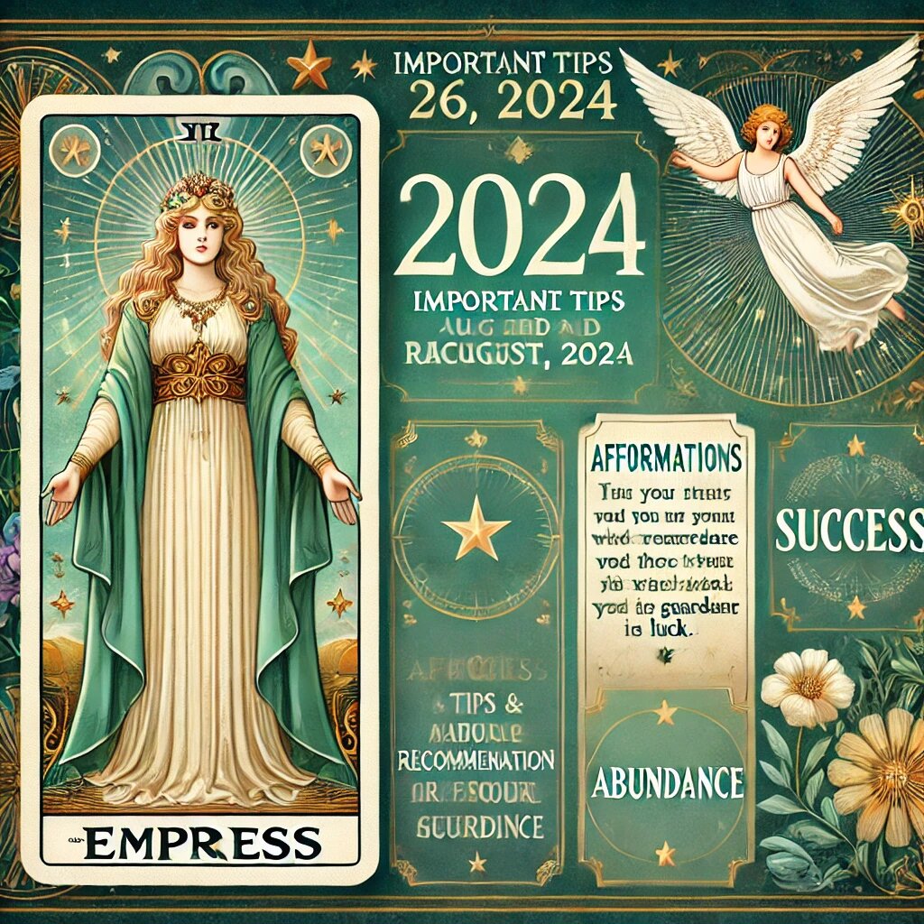Сегодняшняя карта Таро — Императрица. Она символизирует плодородие, изобилие и гармонию. Этот день идеально подходит для творческих начинаний и заботы о близких. Используйте энергию карты, чтобы создать что-то новое и значимое, будь то проект на работе или улучшение семейных отношений. Начните утро с позитивных утверждений: Эти аффирмации помогут вам настроиться на успех и привлечь позитивную энергию в течение дня. Ваш ангел-хранитель напоминает вам о важности терпения и веры в свои силы. Сегодняшнее послание: «Все приходит в свое время. Оставайтесь спокойными и уверенными.» Это значит, что даже если результат не виден сразу, продолжайте следовать своему пути. Для привлечения удачи сегодня рекомендуется носить одежду оттенков зеленого и золотого. Эти цвета символизируют процветание, рост и успех. Используйте их в одежде или аксессуарах, чтобы усилить свою энергию и привлечь благополучие. «Великие дела не совершаются в спешке; терпение и настойчивость приведут к победе.»