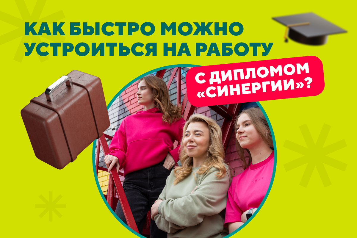 Университет «Синергия» — это образование для карьеры. И этот слоган мы выбрали неслучайно, потому что у наших студентов есть возможность пройти практику, стажировку или трудоустроиться прямо во время обучения. Помогают в этом Центр карьеры, программа стажировок и факультетские партнёрские программы. Университет «Синергия» выдаёт дипломы государственного образца и входит в топ-3 лучших вузов страны по версии hh.ru. Мы лидируем по критерию «Востребованность выпускников вуза среди работодателей». Что учитывалось в рейтинге: Многие наши студенты достигают должностей руководителей ещё до окончания обучения. Оставить заявку на консультацию: synergy.ru/lp/dp2