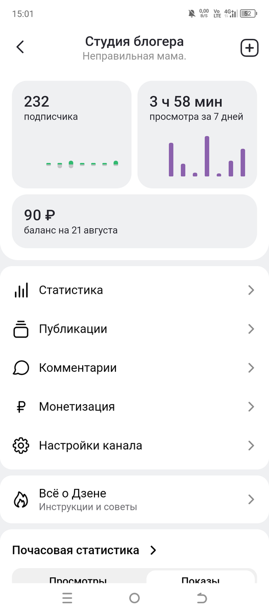 Дзен просто не рекомендует мои публикации. Обидно, и желание публиковаться дальше пропадает. В чём проблема? Как получить показы от Дзена? Я не знаю! Делаю разный материал, практически весь оригинальный. От темы канала не отхожу. Использую разные виды публикации. Думаю над различными заголовками. Придумываю темы для статей. Но Дзену это не нравится. Подписок тоже очень мало, практически нет.