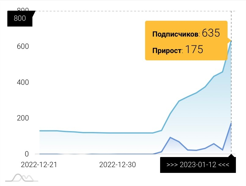 - Охваты на канале были нулевые до начала закупки рекламы.