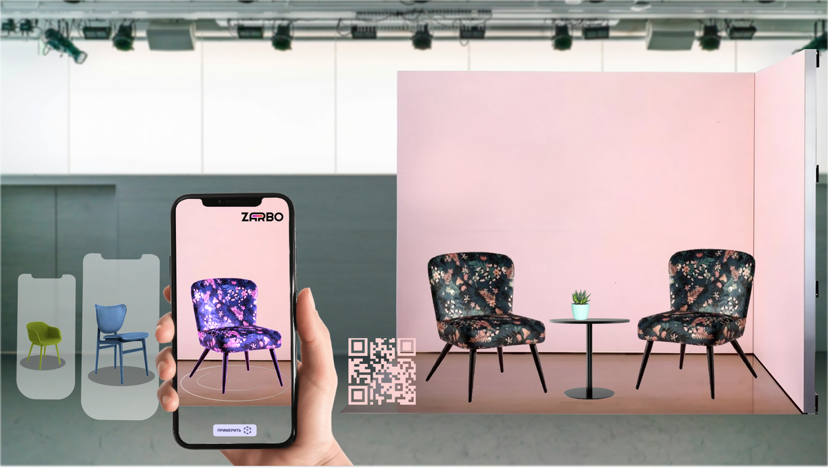 Для демонстрации 3D-модели нужен только планшет или смартфон и QR-код, который автоматически генерируется на специальной платформе. При сканировании кода модель загружается на устройство и накладывается в реальном размере на изображение с камеры.