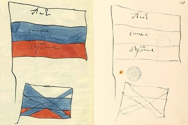 Цвета полос и их расположение на флаге придумал царь Пётр I. Сохранились сделанные его рукой эскизы.