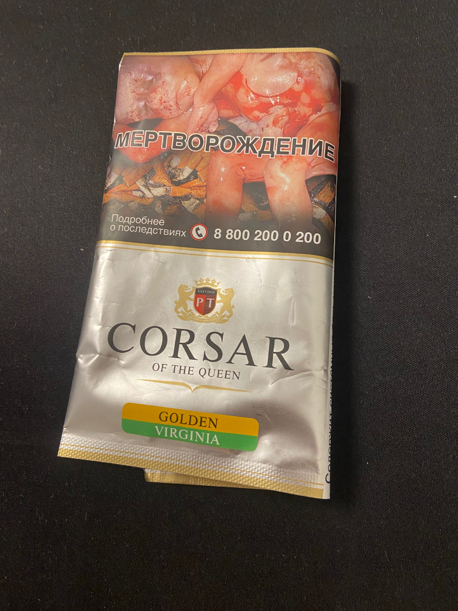 курение вредит вашему здоровью Приветствую всех читателей! Сегодня поговорим о одном из моих любимых табаков Сигаретный табак для самокруток Corsar of The Queen «Golden Virginia» — это бленд средней крепости приготовлен из отборных табачных листьев. Дым этой смеси обладает насыщенным сладким вкусом с лёгкой кислинкой, сбалансированно сочетающийся с нотами засахаренных фруктов. Этот табак я использую на постоянной основе, легко куриться, подойдет для повседневного использования Данный табак без каких либо примесей, равномерно тлеет. Этот табак подойдет для тех кто любит классическую вирджинию, без лишних химических добавок.