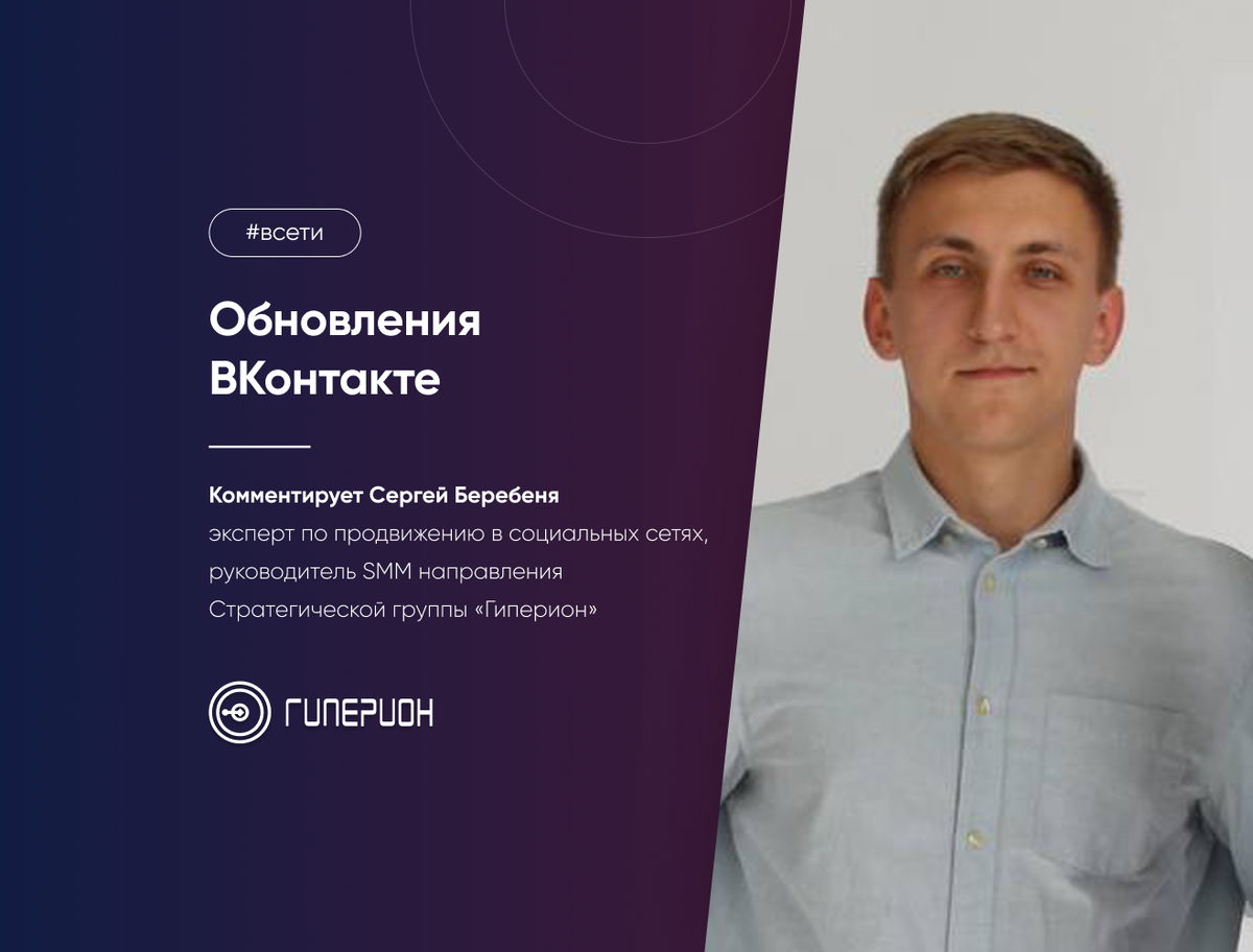 Как раз о таких обновлениях ВКонтакте расскажет сегодня Сергей Беребеня, руководитель направления SMM в Стратегической группе «Гиперион» и эксперт по социальным сетям, в рубрике #всети.