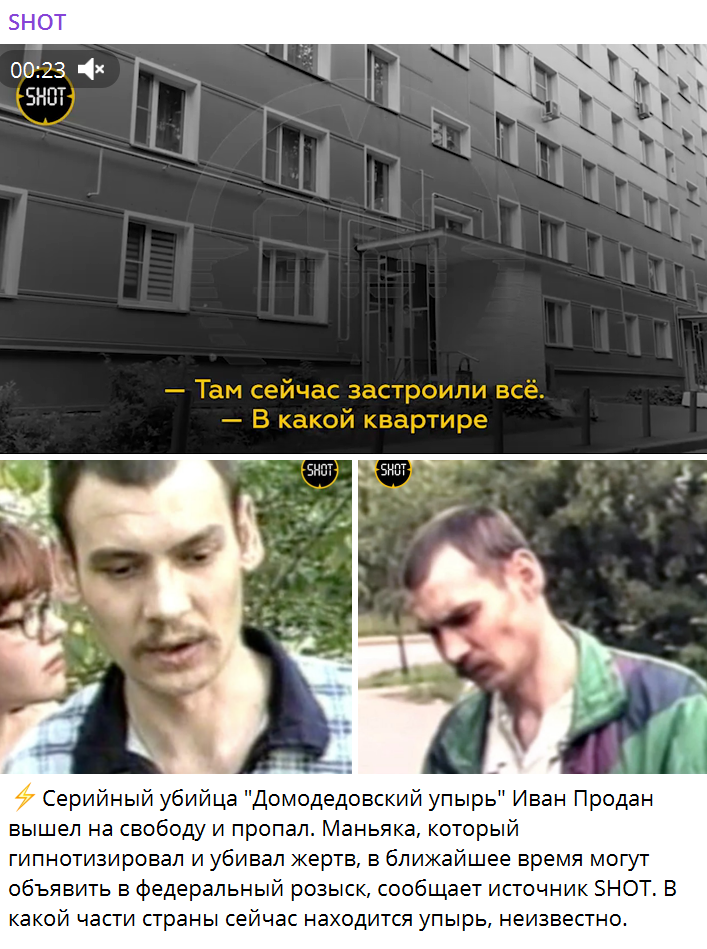 В сети пишут, что серийный маньяк Иван Продан, более известный как «Домодедовский упырь», вышел на свободу. Якобы после 25-летнего заключения он покинул колонию, пропал и будет объявлен в федеральный розыск. Но это не так. ФСИН России опровергла информацию о пропаже преступника: «<…> в январе 2010 года по решению суда осужденный был передан для дальнейшего отбывания наказания в страну, гражданином которой он является, — Республику Молдова». Уроженца Республики Молдова Ивана Продана арестовали в 1999 году. Суд признал его виновным и приговорил преступника к 25 годам лишения свободы в колонии строгого режима. Было полезно? Подпишись на канал!