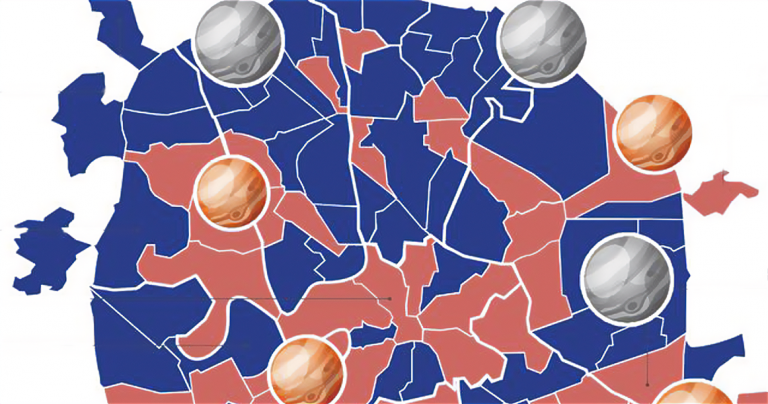 В разгар ретроградного Меркурия, который, согласно астрологам, проходит с 5 по 29 августа, проект «М125» решил провести опрос, верят ли москвичи в то, что это явление оказывает влияние на их жизнь. Как известно, на ретроградный Меркурий свои неудачи часто списывают и те, кто в целом скептически относится к астрологии. Результаты показали, что больше половины москвичей (47%) так или иначе верят во влияние космических сил. И чаще остальных эффект ретроградного Меркурия ощущают жители ЦАО. Почти весь центр, кроме Замоскворечья-Якиманки, окрашен на карте районов в красный цвет — это означает, что число верящих там превышает 50%. Больше всего подверженных влиянию Меркурия, по данным аналитиков, живет в Хамовниках, на Арбате и в Таганском районе. Но это не значит, что в других местах города все сплошь скептики. О влиянии ретроградного Меркурия также говорят жители Восточного, Богородского, Выхино-Жулебино. На карте можно обнаружить концентрацию верящих на юге Москвы — в Чертаново, Царицыно,