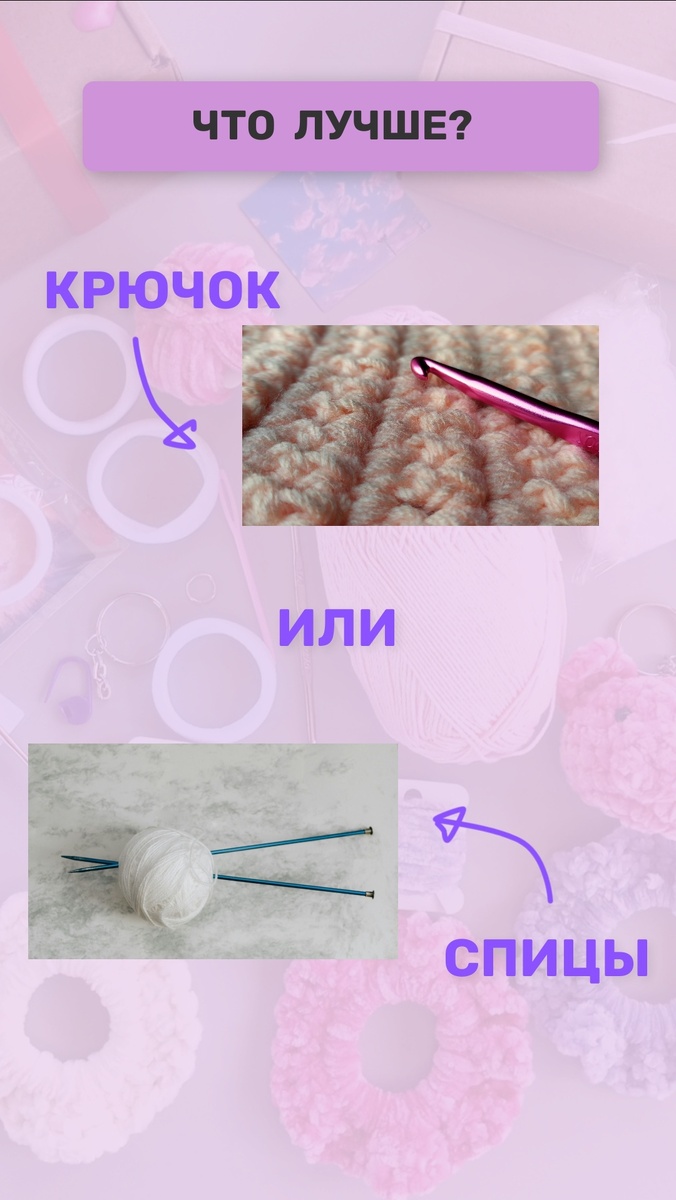 Конечно же, всё индивидуально. У каждого человека свои предпочтения, и некоторые мастера виртуозно владеют как крючком, так и спицами. Спицы. Они прекрасно имитируют машинную вязку, поэтому с их помощью можно воспроизвести популярную и востребованную модель. Процесс обучения также требует внимательности и усидчивости. Из минусов: нельзя «бросить» вязание посередине ряда, так как увеличивается вероятность потери петель и роспусков. Упущенная или неправильно связанная петля приведёт к искажению узора и потребует роспуска нескольких рядов до места ошибки, а одновременно нужно следить за остальными петлями на спице. Крючок. Всё же проще, чем спицы. С помощью крючка получаются более воздушные и ажурные изделия. В работе всегда одна петля (классическое вязание, не тунисское), и если её упустить, очень легко продолжить вязание, при необходимости можно оставить вязание на середине ряда. Крючком проще вязать изделия различных форм и размеров. Неоспоримым плюсом является вязание из отдельны