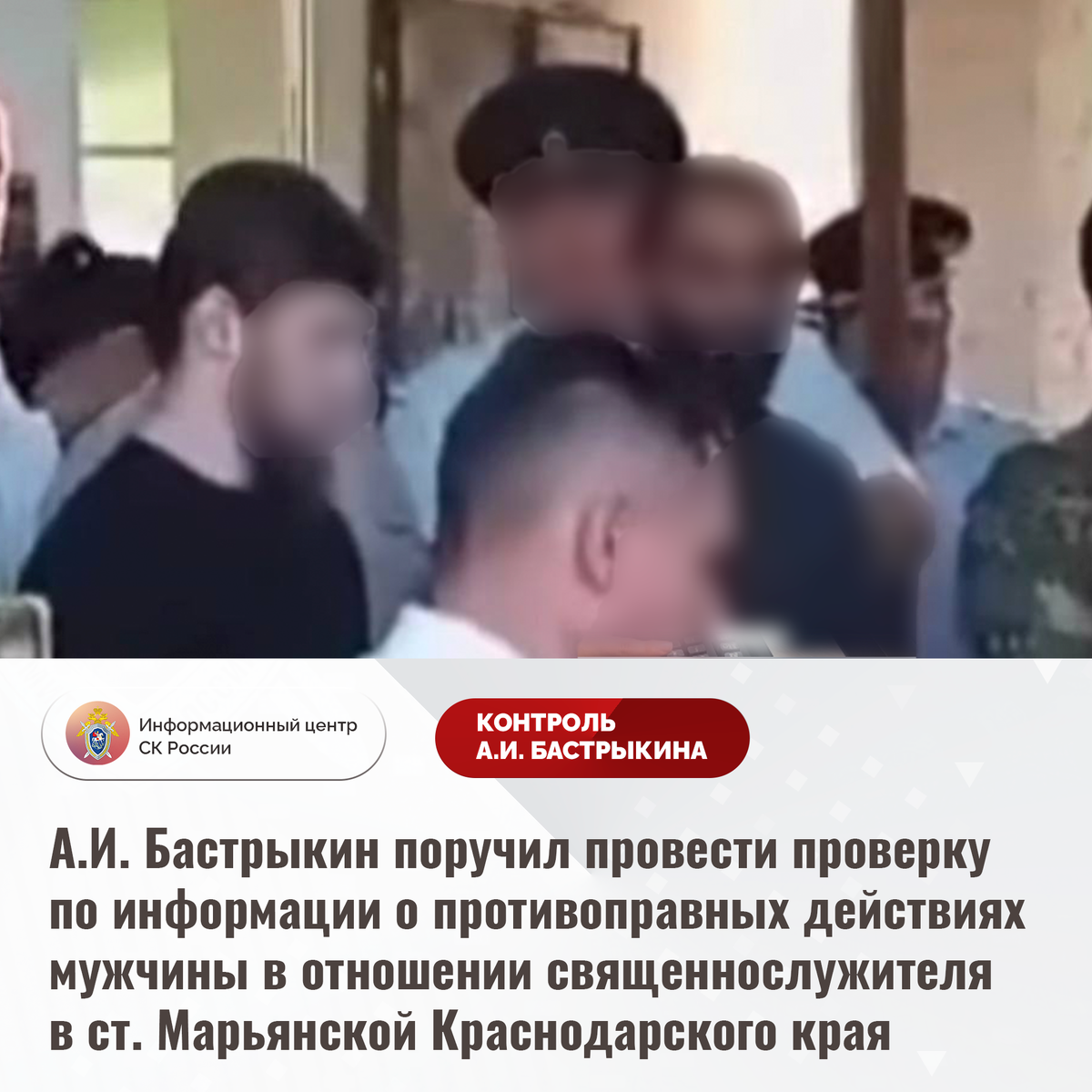 А.И. Бастрыкин поручил провести проверку по информации о противоправных действиях мужчины в отношении священнослужителя в ст. Марьянской Краснодарского края