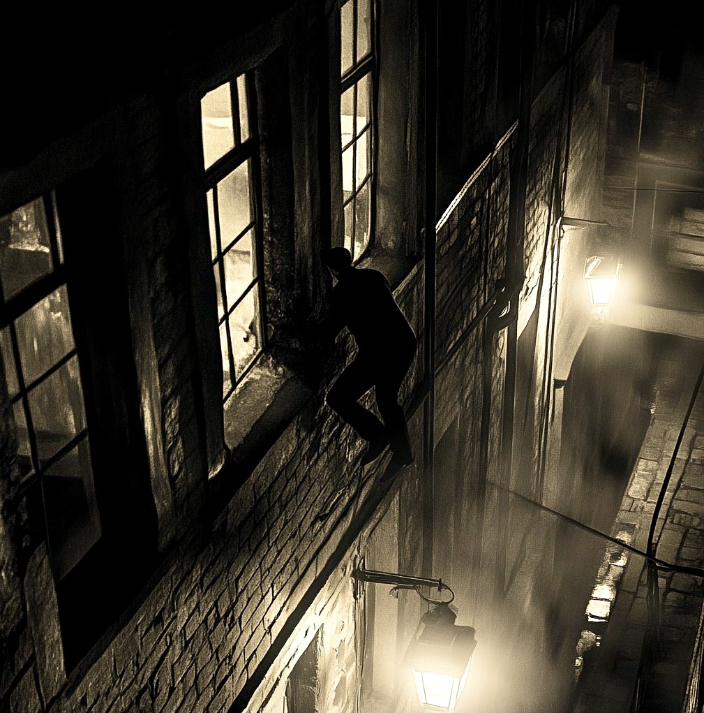 С улицы, когда я осторожно выглянул из окна, донесся грохот военного грузовика и размеренные шаги ночного сторожа. Через минуту или две я оперся на широкий каменный подоконник и ухватился за кованые скобы ящика для цветов, выступающие по обе стороны и уходящие вниз на несколько футов. Я соскользнул вниз, пока не повис во весь рост, держась руками за самые концы кронштейнов и прижимаясь как можно ближе к фасаду дома. Теперь мне предстояла самая трудная часть пути - прыжок на широкий декоративный карниз, опоясывающий дом на одном уровне с полом. Мне удалось благополучно проделать этот трюк, и, медленно выпрямив ноги, я немного помедлил, прежде чем продолжить свой путь. Бросив взгляд через плечо, туда, где красная лента фонарей крест-накрест пересекала темно-синий сумрак парка Сокольники, я твердо посмотрел прямо перед собой. Наконец, повернувшись боком, я пошел вдоль карниза к темным очертаниям окна Помпейской комнаты. Достигнув своей цели, я, в холодном поту, остановился, молча воздал благодарность старому цыганскому степному главарю, господарю Драгуину, который обучал меня таким трюкам с детства. И…..