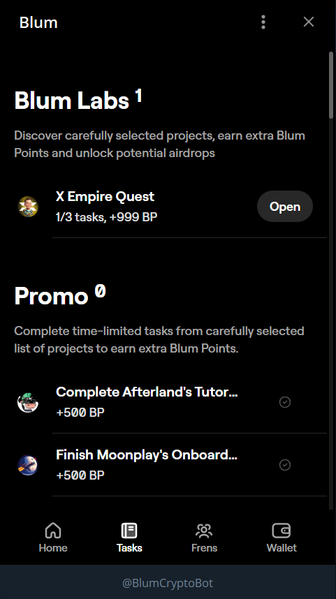 BLUM - на проект у меня лично очень большие надежды так как за его созданиям состоят экс сотрудники Binance по СНГ. Большим плюсом проекта считаю что нет необходимости заходить и постоянно тапать. Основная масса поинтов фармится просто заходом раз в 8 часов и нажатием сбора. Так же есть раздел Tasks. Здесь довольно таки много заданий где в основном достаточно просто перейти по ссылке. Быстро и легко выполняются и дают пару тыс. поинтов. Есть так же Drop game. Билеты для участия в ней выдаются за постоянные заходы в бота. При ежедневном заходе кол-во билетов растет до определенного момента. Билеты я пока коплю т.к есть слух о том что готовиться обнова когда в drop game будет падать очень хорошие награды. Сама игра представляет собой игру в которой падают три элемента. Зеленые нужно собирать за них начисляют поинты. Синии - замораживают экран и время. Бомбы нужны пропускать, они сжигают все собранные за текущую игру поинты. Ну и последний способ заработать это приглашать друзей в BLUM.