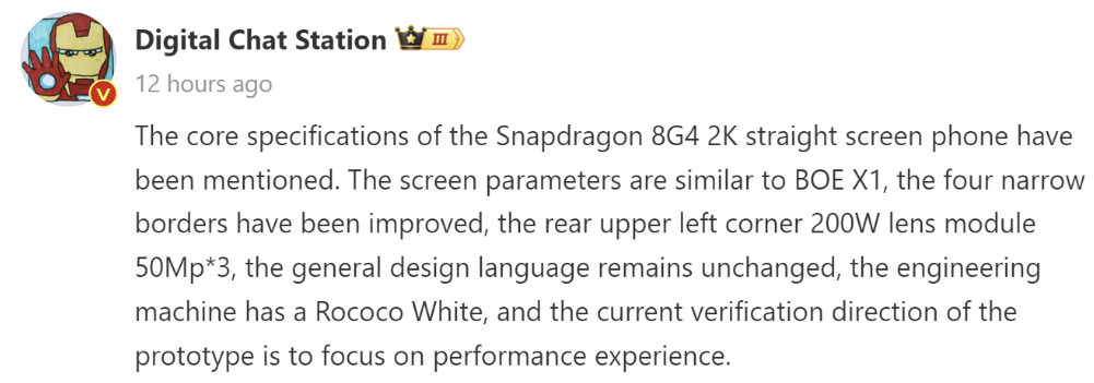Слухи об iQOO 13 продолжают поступать, и ожидается, что телефон будет выпущен в Китае в ноябре этого года. Сегодня известный инсайдер Digital Chat Station опубликовал сообщение на Weibo, в котором поделился ключевыми подробностями о характеристиках и дизайне камеры телефона. В приведенном сообщении на Weibo предполагается, что iQOO 13 будет иметь три 50-мегапиксельные камеры. К сожалению, инсайдер не раскрыл конкретную информацию о сенсорах камеры, которые будут доступны на iQOO 13. Напомню, что iQOO 12 оснащен 50-мегапиксельной основной камерой с поддержкой OIS, 64-мегапиксельным перископическим телеобъективом с 3-кратным оптическим увеличением и OIS, а также 50-мегапиксельным сверхширокоугольным объективом. Digital Chat Station отметил, что модуль камеры будет похож на недавно обновленный логотип Xiaomi, это указывает на то, что iQOO 13, скорее всего, сохранит дизайн модуля камер, который был в iQOO 12. Ожидается, что общий дизайн устройства останется в основном неизменным с добавлен