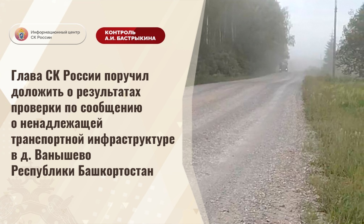 Глава СК России поручил доложить о результатах проверки по сообщению о ненадлежащей транспортной инфраструктуре в д. Ванышево Республики Башкортостан