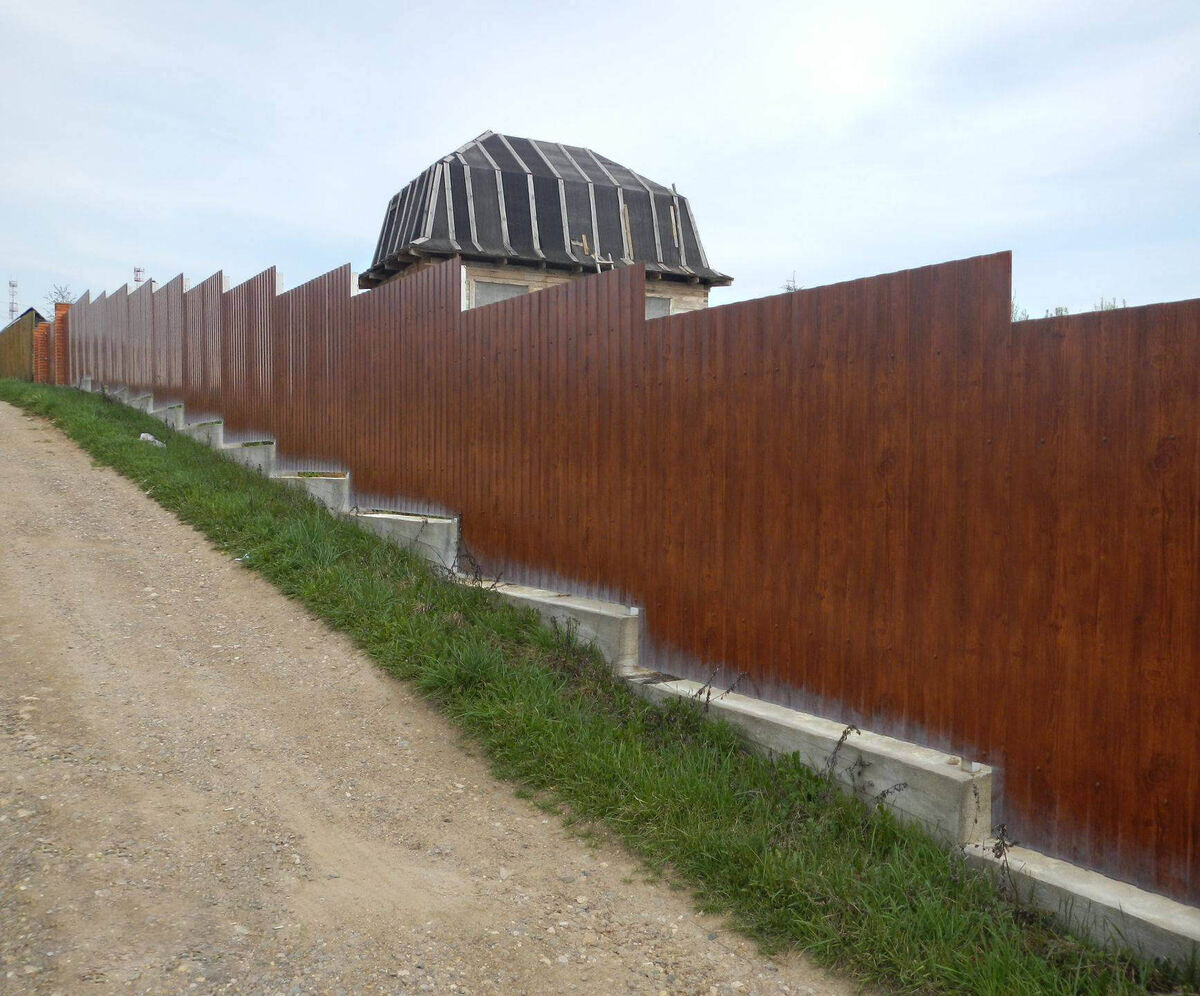 Правда, вот забор будет лесенкой. Чтобы обыграть неровности, скорее всего придется приглашать дизайнера, а это повысит расходы.