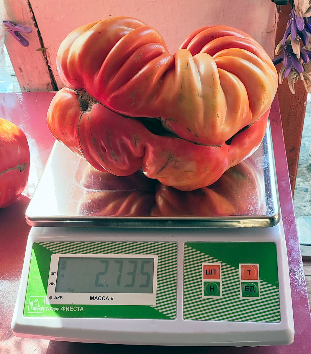 Томат весом 2 килограмма 735 граммов вырастил пенсионер Александр Терехов. Это самый большой помидор за всю историю проведения главного праздника южной столицы края.