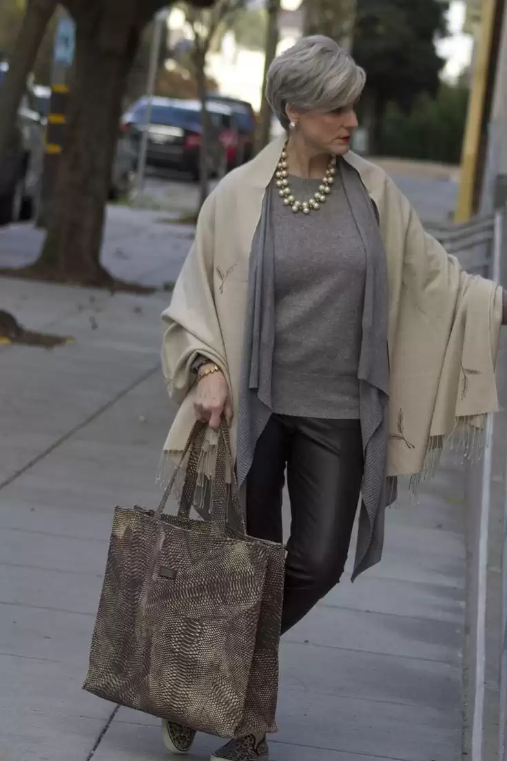 Дорогие мои! Мир моды не знает границ, и возраст здесь не помеха. Возраст — это всего лишь цифра. Если вы слышали эту поговорку, то знаете, что никогда не поздно стать иконой стиля, особенно в эпоху социальных сетей. Возможно, вы обратили внимание, что большинство модных советов и тенденций, которые публикуются в интернете, ориентированы на молодых девушек. Может показаться, что дамы старше 60 лет не стремятся следить за модными тенденциями и элегантным стилем. Однако это не так! Если вам 60 это не значит, что вы не можете примерить на себя последние модные тренды. Даже самый скучный наряд можно сделать ярким и интересным с помощью ярких элементов и аксессуаров. Например, эти синие брюки и шарф сделают ваш образ неповторимым. Женщинам в возрасте иногда есть чему поучиться у младшего поколения. Вот яркий пример того, как можно черпать вдохновение у молодых. Этот образ в стиле Кейт Миддлтон, включающий в себя леопардовую юбку и черный топ, вдохновляет и восхищает. «Стареть со стилем»