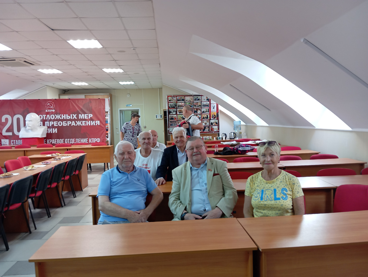 20 августа в краевом комитете КПРФ состоялось поздравление ветеранов партии: тех, кто 30 лет более состоит в рядах КПРФ (КПСС) и по сей день активно участвует в работе партийной организации, выполняя различные поручения, участвуя в работе общественных организаций. Поздравить ветеранов пришли члены народного хора «ДЕТИ ВОЙНЫ» городской организации «Дети войны» (художественный руководитель Владимир Гуськов, концертмейстер Олег Анисимов). Перед началом выступления председатель правления Ставропольского регионального отделения Общероссийской общественной организации «Дети войны» Василий Смоляков вручил Благодарственное письмо Председателя Думы края солисту хора, члену совета Ставропольской организации «Дети войны» Владимиру Ивановичу Бледных: за активную общественную деятельность и большой личный вклад в защиту прав и интересов людей, имеющих статус «дети войны» . Народный хор «Дети войны», выступая перед сидящими в зале ветеранами, исполнил программу, состоящую из популярных песен патриот