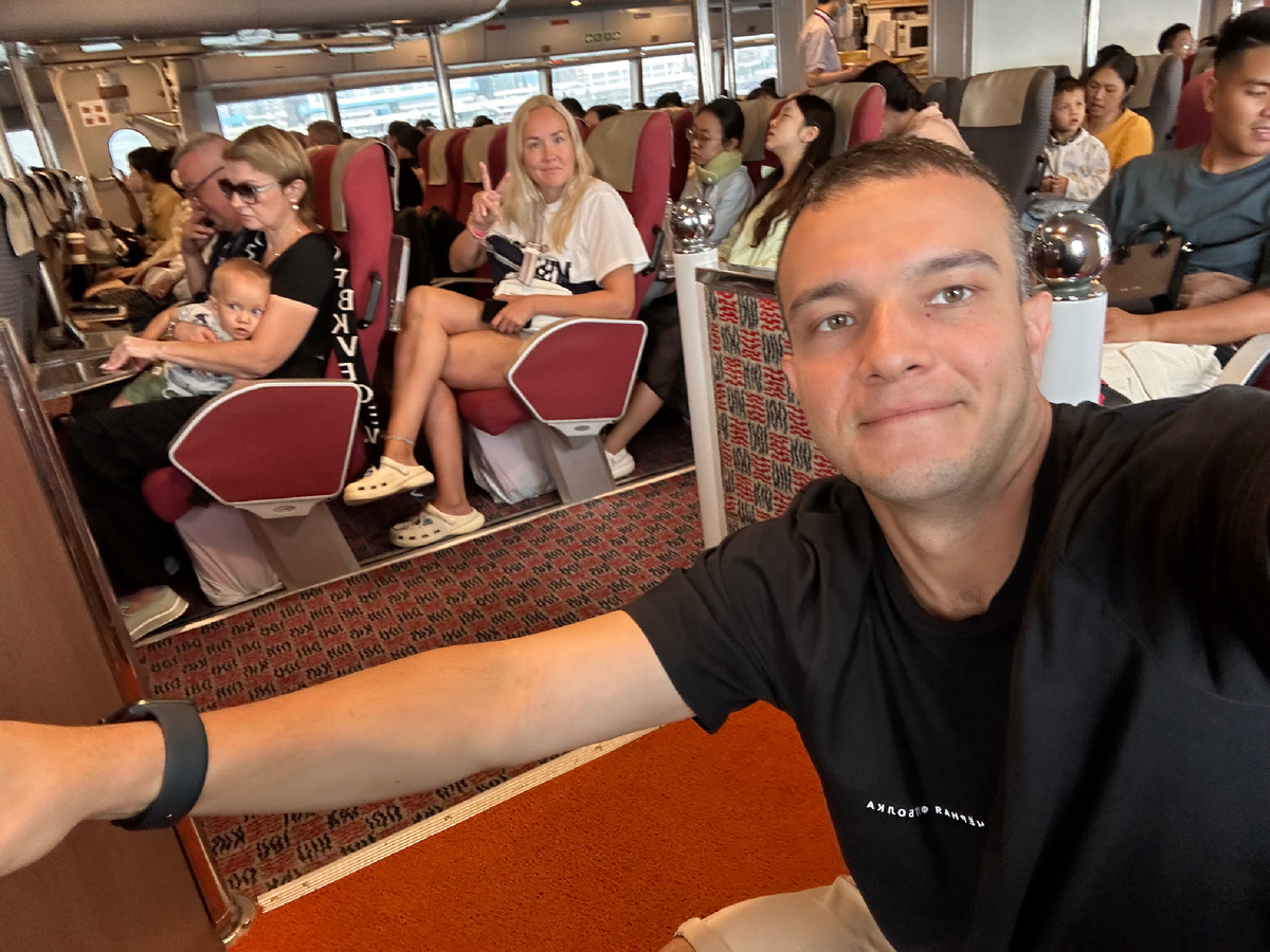 Мы расселись на своих местах в эконом-классе. Впереди у нас было около 55 минут плавания. На борту еду не предоставляют, но при желании можно купить сэндвич и чай за дополнительную плату.