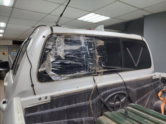 Замена заднего стекла на Тойота HI-LUX. Клиент привез б/у стекло и установили.