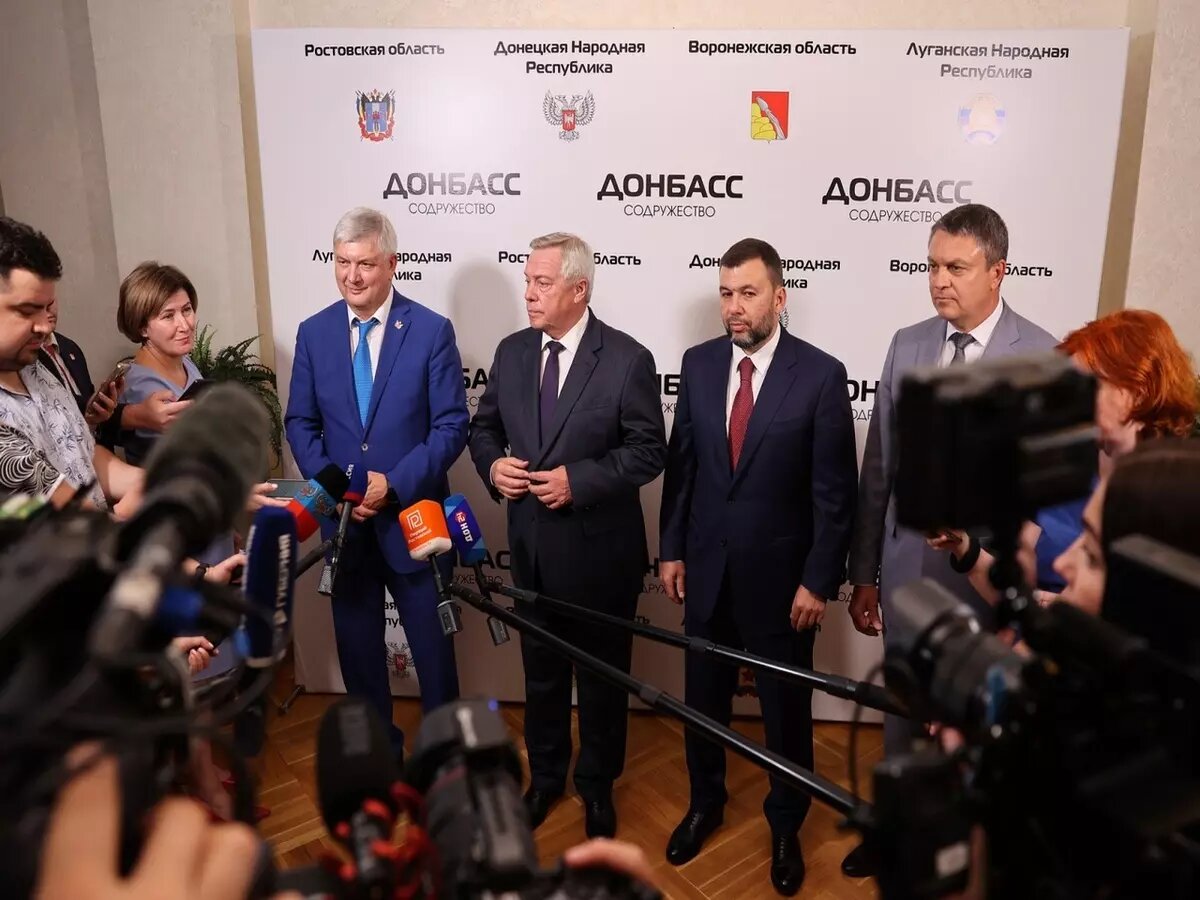 В Ростове 20 августа прошло очередное заседание Содружества «Донбасс». В нем приняли участие главы регионов Ростовской, Воронежской областей, Донецкой и Луганской Народных Республик.