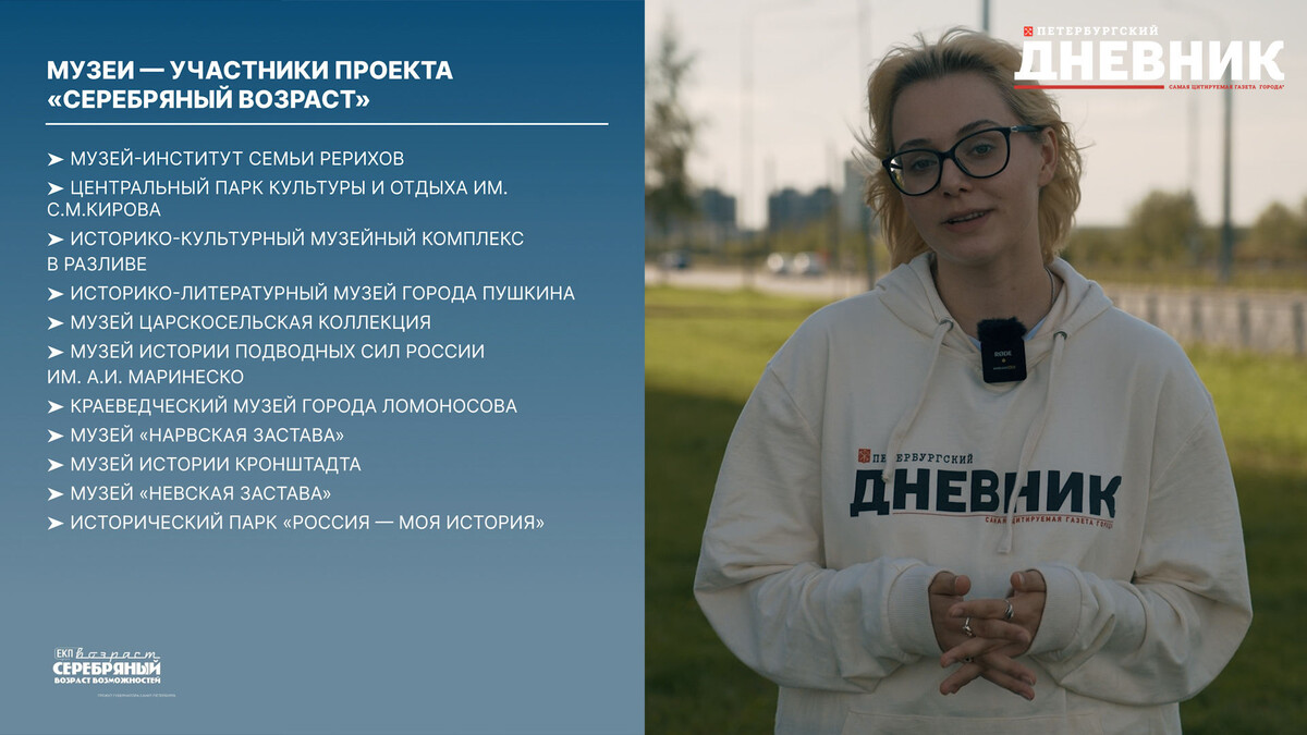 С 1 сентября держатели карты «Серебряный возраст» могут посещать городские музеи в Петербурге буквально за один рубль. Проект осуществляется на базе Единой карты петербуржца для людей пенсионного возраста – действующий держатель карты петербуржца подключится к проекту автоматически. «Это же очень интересно – посещать музеи», – отметила пенсионер Елена Кононова. «Конечно, это здорово, вот просто здорово, – добавила пенсионер Галина Нестерова. – Я регулярно хожу, поэтому мне это очень даже интересно». «Многие пожилые смогут посетить музей», – подчеркнула пенсионер Александра Бардовская. «Я с удовольствием, я люблю посещать музеи. И вот недавно была на выставке «Мой Петербург», мне она очень понравилась. Там действительно много информации можно получить, потому что мы не всё знаем всё-таки в разных областях, а там такая всесторонняя информация, поэтому очень интересно, – рассказала пенсионер Тамара Хаславская. – Посещение музеев и выставочных залов и всего нового, что происходит в культур