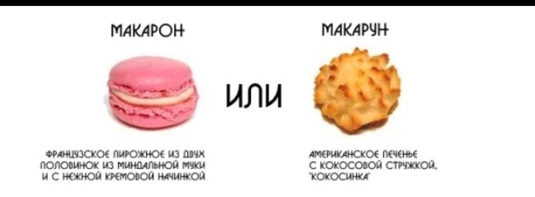 Макарун и макарон — это два разных десерта. Макарун (от англ. "macaroon") — это американское кокосовое печенье, обычно из тертого кокоса и яичных белков. Макарон (от фр. "macaron") — это французское миндальное печенье, состоящее из двух половинок с кремовой начинкой между ними, мягкое внутри и хрустящее снаружи. Несмотря на схожесть названий, их состав и текстура различаются. Основные ингредиенты макарОна включают миндальную муку, яичные белки и сахар. Выпекается оно на рисовой бумаге, что придаёт ему особую текстуру. Макароны могут быть различных цветов и вкусов, часто ароматизированных ванилью, шоколадом или фруктами. Исторически, макароны появились в Италии в VIII веке, а затем адаптировались во Франции, где стали популярными благодаря кондитерам Рецепт макаронов: Ингредиенты (на 17 штук): Миндальная мука: 83 г Сахарная пудра: 83 г Яичные белки: 58 г Сахар: 58 г Краситель (по желанию): на кончике ножа Для лимонного курда: Сахар: 50 г Сливочное масло: 50 г Яйцо: 1 шт. Лимонный с