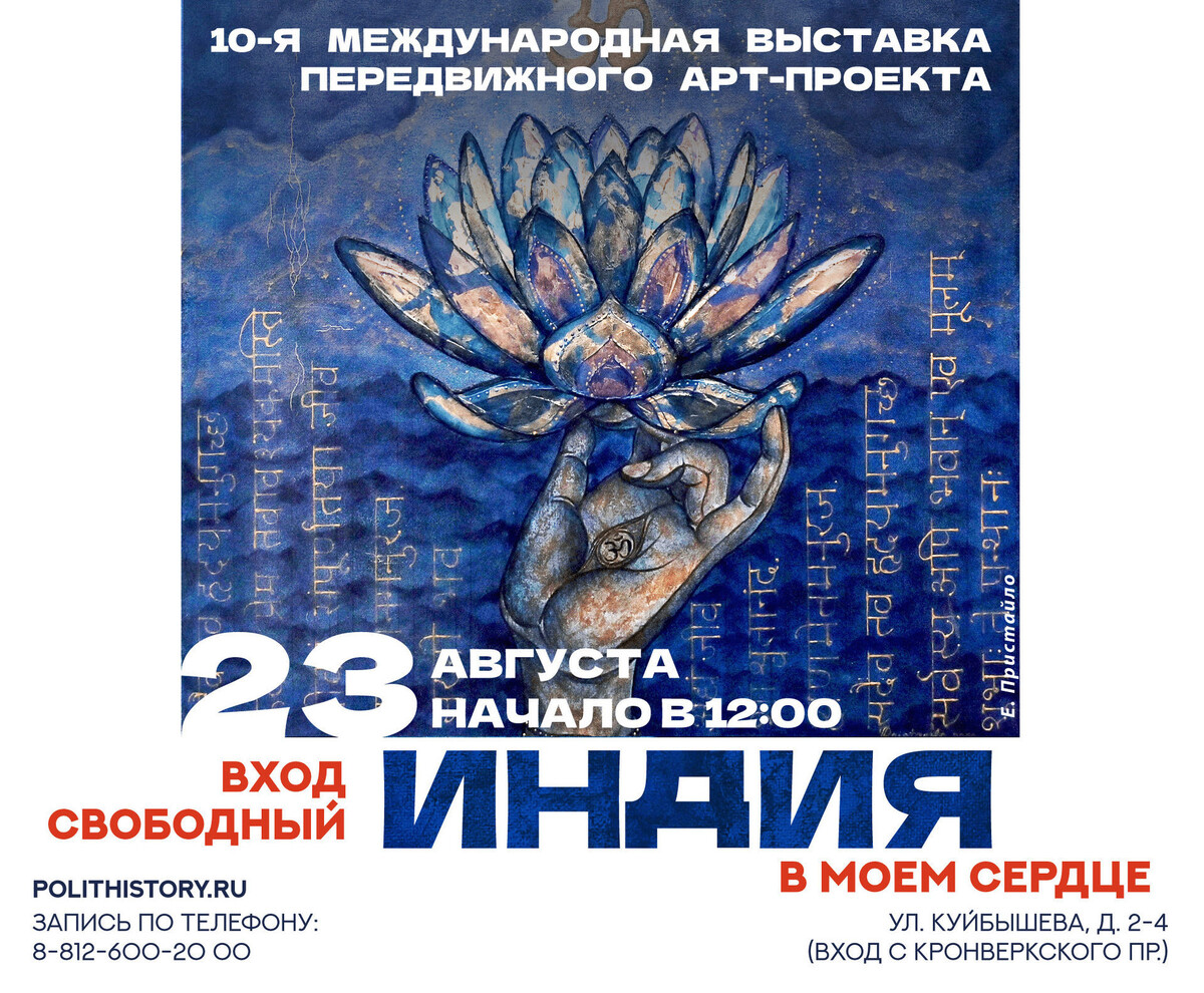В Северной столице в предстоящую пятницу, 23 августа, в Музее политической истории России состоится открытие X Международной выставки передвижного арт-проекта «Индия в моем сердце» с участием Генерального консульства Республики Индия в Петербурге. Как рассказали в пресс-службе музея, посетители смогут увидеть картины российских и индийских художников, выполненные в разных техниках: масло, акварель, акрил, темпера, смешанная техника, коллаж, литография. Кроме того, на выставке будут представлены предметы из фондов музея, тематически связанные с Республикой Индия. В рамках торжественной церемонии открытия артисты исполнят индийскую рагу на традиционных музыкальных инструментах ситар и табла. Танцоры познакомят всех желающих с основными танцевальными стилями Индии: бхаратнатьям, катхак, болливуд, народным стилем юга страны. Выставку можно посетить с 23 августа по 1 сентября в часы работы музея. Вход свободный.